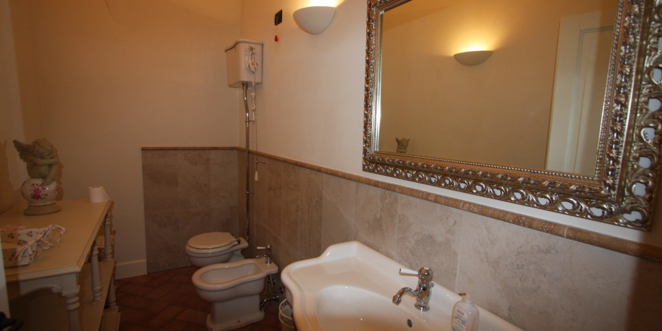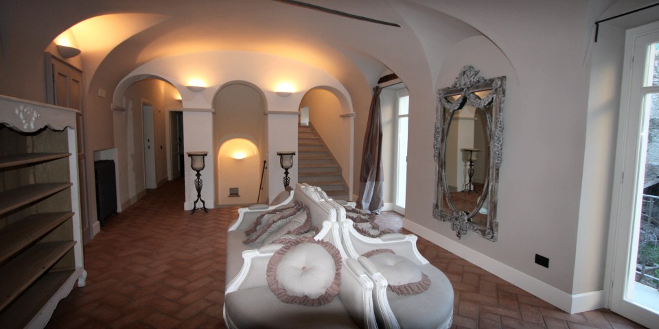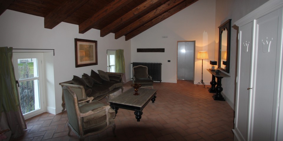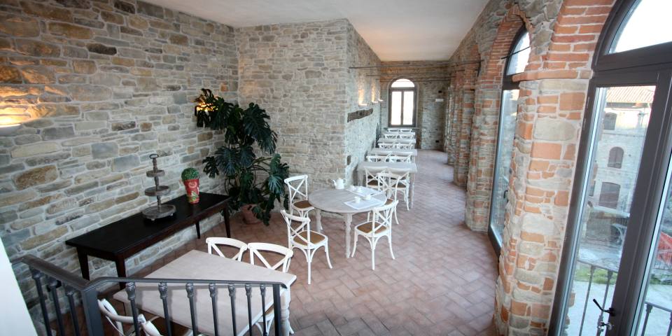 Der zweite Stock des Hauses befindet sich auf dem Strassenniveau und von hier führt der Haupteingang in das Gebäude und in den Empfangs- und Rezeptionsbereich mit Zugang zur Bar und zum Cafe, wo auch das Frühstück serviert wird. Im Anschluss an den Empfang befindet sich ein grosser Raum, der vielfältig genutzt werden kann, zum Beispiel für Seminare oder auch als Therapieraum, daneben befindet sich ein Bad. Ebenfalls auf dieser Ebene führt eine Tür auf eine grosse Terrasse, mit Blick über das Dorf, die Weinberge und die schöne Hügellandschaft.