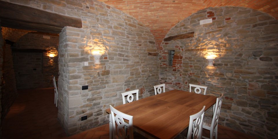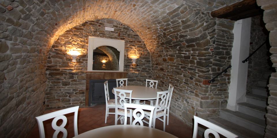 Das Restaurant und die Küche befinden sich im ersten Stock. Die Küche ist modernst und vollständig eingerichtet und das Restaurant wurde im historischen Weinkeller des Hauses untergebracht. Die wunderschönen, mittelalterlichen Gewölbe wurden vorsichtig restauriert und verleihen nun dem Restaurant das besondere Ambiente.