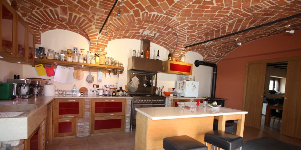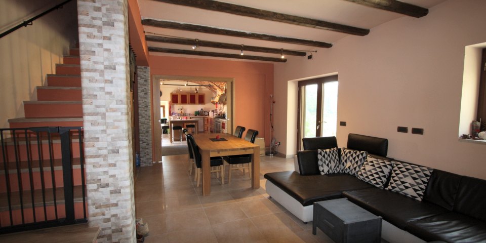 Ursprünglich ein Stallgebäude wurde dieses 2013 zu einem Wohnhaus aus- und umgebaut. Das Erdgeschoss besteht aus einem sehr grossen Raum, der in eine Küche und einen Wohn- Essbereich geteilt wurde. Das wunderschöne, antike Deckengewölbe bildet einen gelungenen Kontrast zur modernen Gourmetküche und im Anschluss daran, getrennt durch eine Wand mit einer grossen Schiebetür, befindet sich der zeitgenössisch gestaltete Wohn- Essraum. Von diesem führt eine grosse Glastür auf die überdachte Terrasse und dem Aussensitzplatz auf der Westseite des Hauses. Der Essplatz wurde mit einem gemauerten Grill und Pizzaofen ausgestattet und ist von aussen völlig uneingesehen.