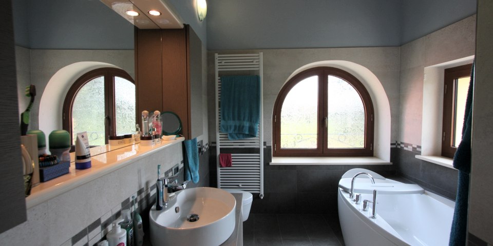 Im Erdgeschoss des Nebengebäudes wurden ein Wirtschaftsraum, der Heizraum und ein kleines Bad mit Dusche und WC untergebracht.