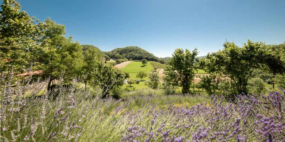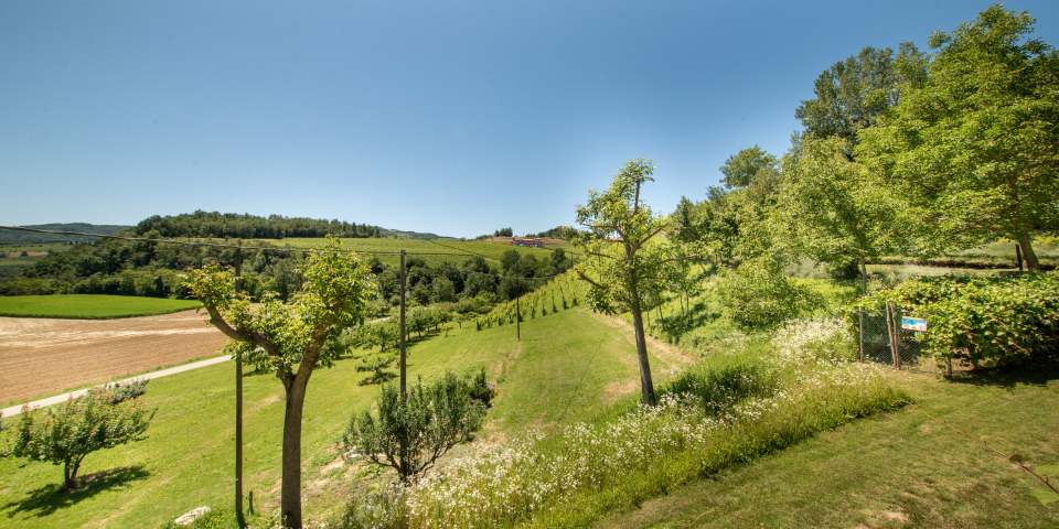 Das insgesamt ca. 18,000 m² grosse Grundstück inkludiert einen kleinen Rebberg (renoviert 2013 - 2018) von ca. 5000 m², der ca. 4 Tonnen Dolcetto, Barbera und Moscato Trauben produziert. Der Weinberg wird von einer Kooperative gepflegt und die Trauben werden von einem Weinbauern in der Region zu Hausweinen verarbeitet.
