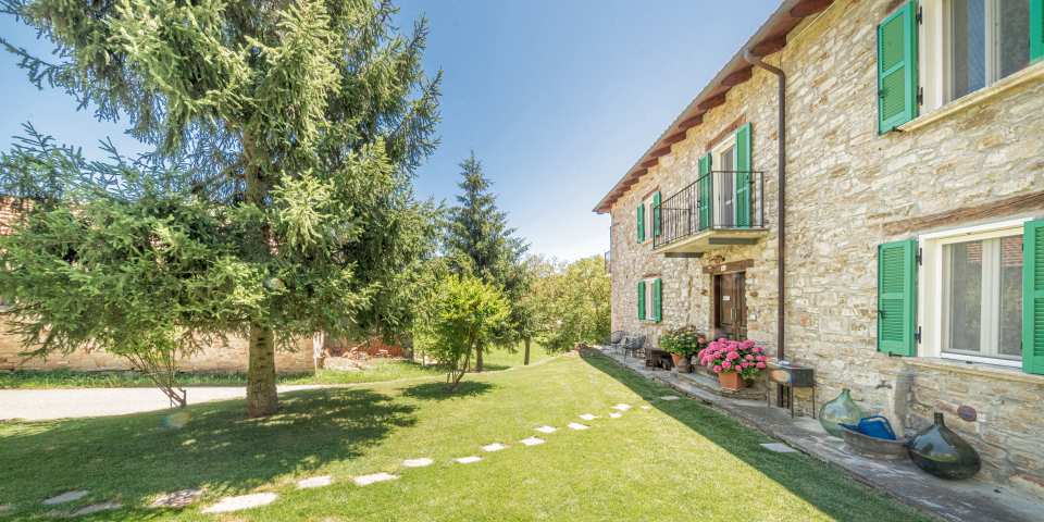 Gut erreichbar, über eine wenig befahrene, kleine Nebenstrasse, befindet sich das antike Steingehöft in wunderschöner, unverbauter Lage mit Aussicht auf die Hügel des südlichen Monferrato. Der Hof besteht aus vier freistehenden Natursteingebäuden - drei davon sind vollständig renoviert und bestens bewohnbar, das vierte Gebäude, ein kleiner Turm, könnte noch bei Bedarf ausgebaut werden.