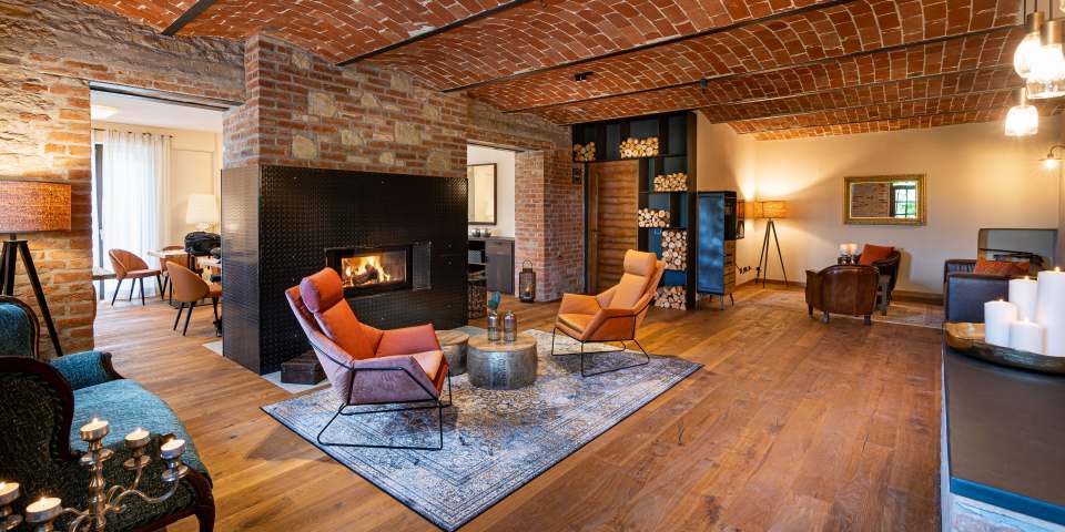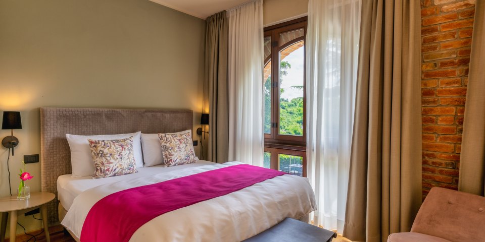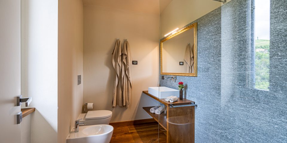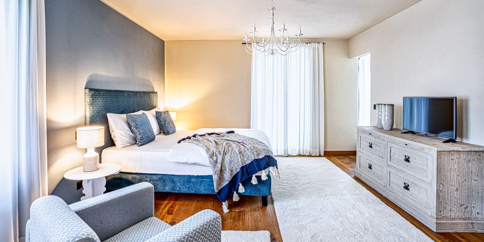 Insgesamt bietet das Haus 7 Superior Schlafzimmer, jeweils mit Bad, eine Ferienwohnung mit Küche, Wohnbereich und Schlafzimmer, Bad und Terrasse (für 2 - 4 Personen); eine Studiosuite mit kleiner Küche, die privat genutzt wird. Darüberhinaus verfügt das Haus über eine Profiküche, einen grossen Aufenthaltsraum mit offenem Kamin und einen Speiseraum, Gäste WC, einen antiken Weinkeller mit einem Weinverkostungsbereich, einen Wirtschaftsraum, ein Büro und einen Portico. Auf der Rückseite des Gebäudes ist eine Garage untergebracht, in der sich alle zur Bearbeitung der Weinberge notwendigen Maschinen befinden.