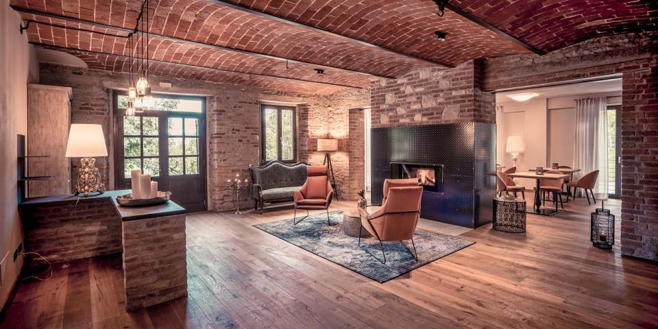 Das grosse, im typisch piemontesischen Stil errichtete Gutshaus entstand um 1900 und hat eine Gesamtfläche von ca. 600 m². 2017/2018 wurde das Gebäude mit sehr viel Aufwand saniert, renoviert und zu einem exklusiven Gästehaus ausgebaut.
