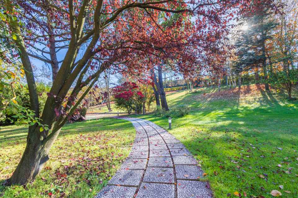 Das die Villa umgebene Grundstück ist zum grossen Teil eingezäunt: Ein automatisches Tor führt von der kleinen Landstrasse, an dem sich der Besitz befindet, zu einem grossen Vorplatz und zu den Gebäuden. Ein zweites Tor und eine zweite Zufahrt führen zur Poolanlage. Das Grundstück um die Villa herum wurde in einen rund ums Jahr attraktiven Park verwandelt mit schattigen Sitzplätzen, grosszügigen Rasenflächen und einer Vielfalt an Bäumen. Der gepflegte Park ist eine Oase der Ruhe und Erholung.
