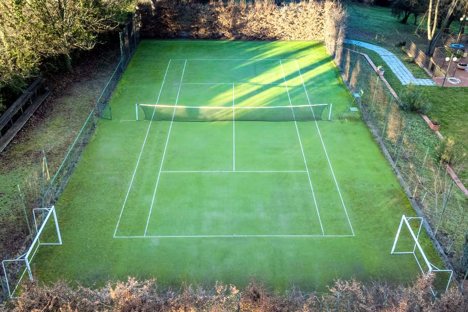 Der Tennisplatz befindet sich neben der Poolanlage.