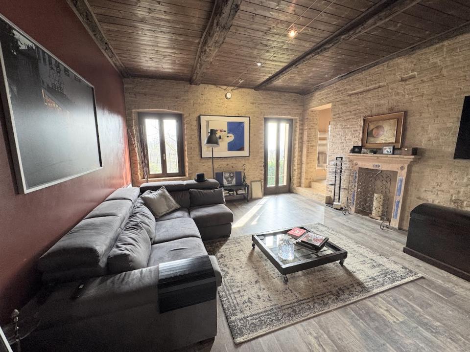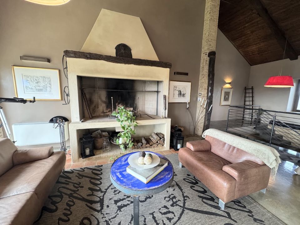 Die Galerie im ersten Stock führt in den offenen Wohnbereich. Die einstige Heudiele wurde zu einem grossen Wohn-Essraum mit offenem Kamin und einem schicken Küchenbereich ausgebaut. Die riesigen, bodentiefe Glasfenster geben dem Raum viel Licht und der Sichtdachstuhl sorgt für den Wow-Effekt.