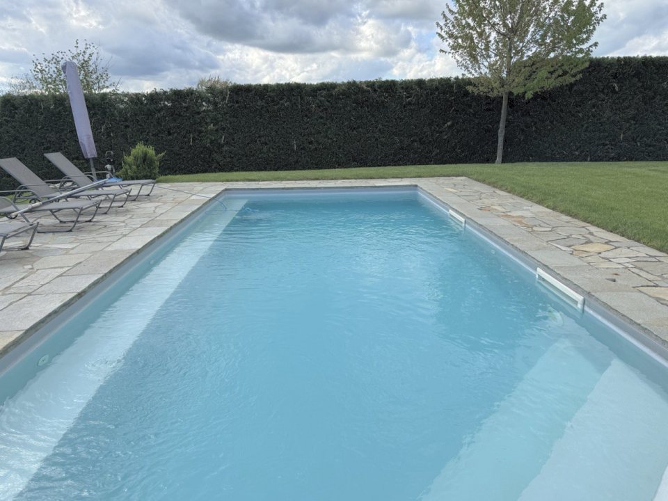 Der Garten besteht aus gepflegten Rasenflächen mit schattenspendenden Bäumen und blühenden Sträuchern. Ein Highlight ist der nach Südwesten ausgerichtete Swimmingpool mit einer Sonnenterrasse. Von dort sind es wenige Schritte zum schattingen Portico (überdachte Terrasse) mit Zugang zum Haus und zur Sommerküche.