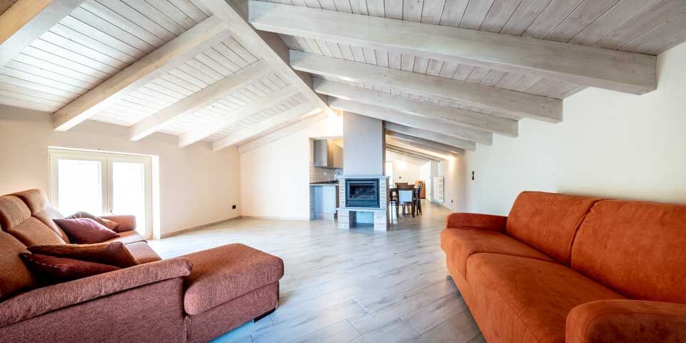 Das Dach wurde bestens isoliert und der helle Sichtdachstuhl gibt den Räumen seinen Charakter.