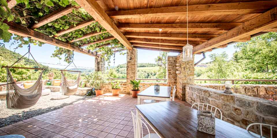 Etwas abseits vom Gästehaus befindet sich das 2013 kernsanierte, private Wohnhaus- ein antikes Steinhaus -, das über 2 Schlafzimmer - eines mit privatem Bad -, eine gemütliche Wohnküche, einen Wohnraum und ein Gästebad sowie 2 Terrassen, 2 Balkone sowie über einen grossen Lagerkeller mit separatem Weinkeller vefügt.