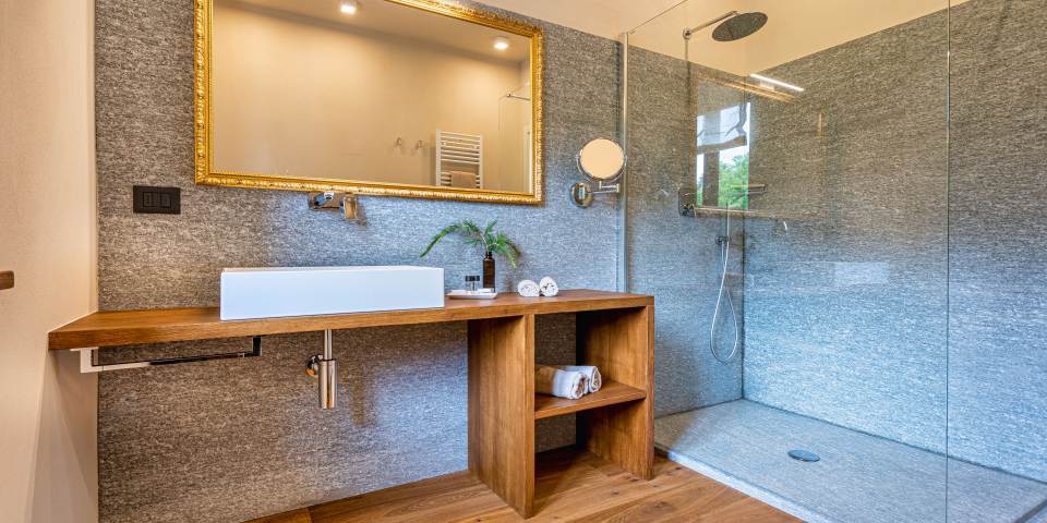 Insgesamt bietet das Haus 7 Superior Schlafzimmer, jeweils mit Bad, eine Ferienwohnung mit Küche, Wohnbereich und Schlafzimmer, Bad und Terrasse (für 2 - 4 Personen); eine Studiosuite mit kleiner Küche, die privat genutzt wird. Darüberhinaus verfügt das Haus über eine Profiküche, einen grossen Aufenthaltsraum mit offenem Kamin und einen Speiseraum, Gäste WC, einen antiken Weinkeller mit einem Weinverkostungsbereich, einen Wirtschaftsraum, ein Büro und einen Portico. Auf der Rückseite des Gebäudes ist eine Garage untergebracht, in der sich alle zur Bearbeitung der Weinberge notwendigen Maschinen befinden.