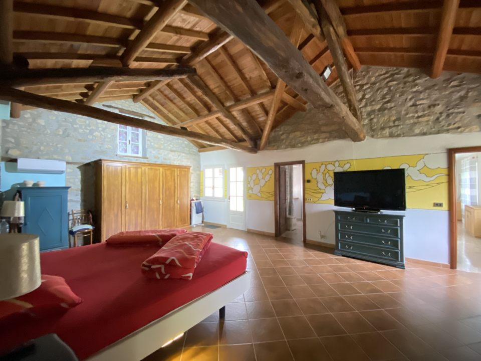 Bei der Renovierung wurden die landestypischen Ziegelgewölbedecken vorsichtig renoviert und auch die schönen, antiken Natursteinwände, wo immer möglich, wurden renoviert und nicht verputzt. Heute geben diese Akzente dem Haus seinen Charme und definieren den Stil. Das L-förmige, antike Steinhaus ist bestens ganzjährig bewohnbar und genießt einen schönen Panoramablick über die sanften Hügel der Langhe.