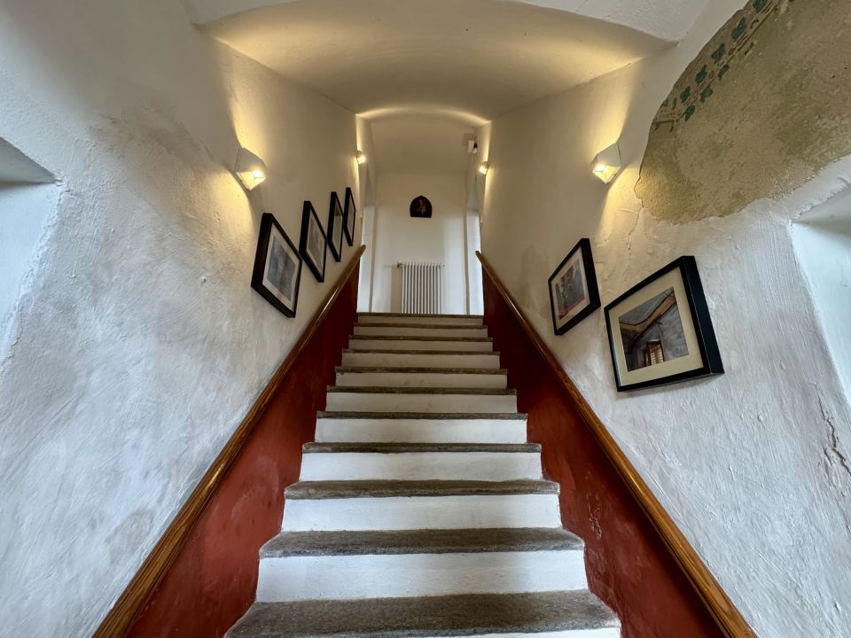 Vom Vorraum im Erdgeschoß führt die originale, gut erhaltene Steintreppe hinauf in den ersten Stock zu den beiden Wohneinheiten.
